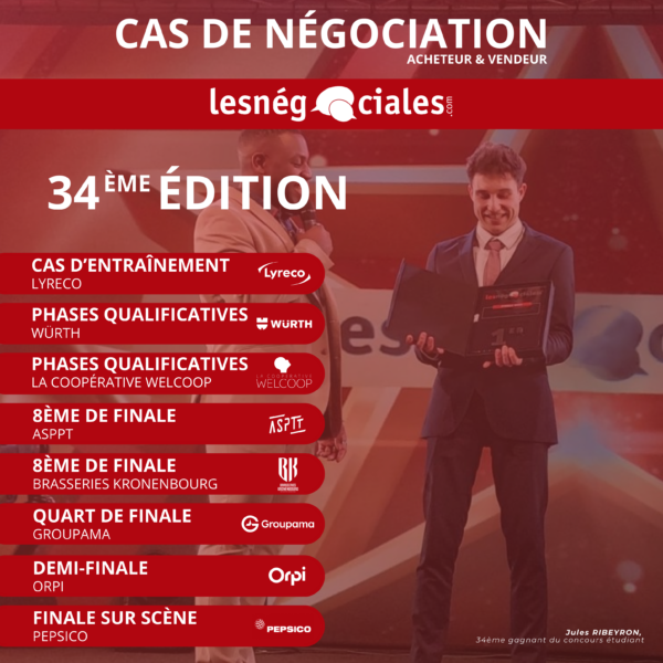 Plongez au cœur de la 34ème édition du concours Les Négociales® avec 8 cas de négociation rédigés en partenariat avec nos entreprises partenaires !